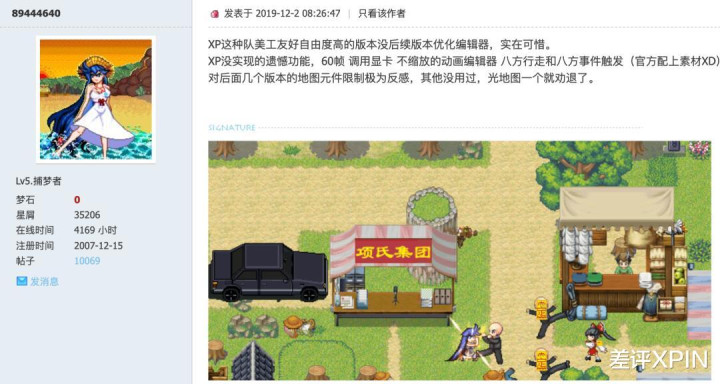 像是有东谈主在 2019 年发帖说,2004 年的 RPG Maker XP 对好意思工友好目田度高,后边几个版块对舆图元件适度让他很不爽,是以根本无谓。