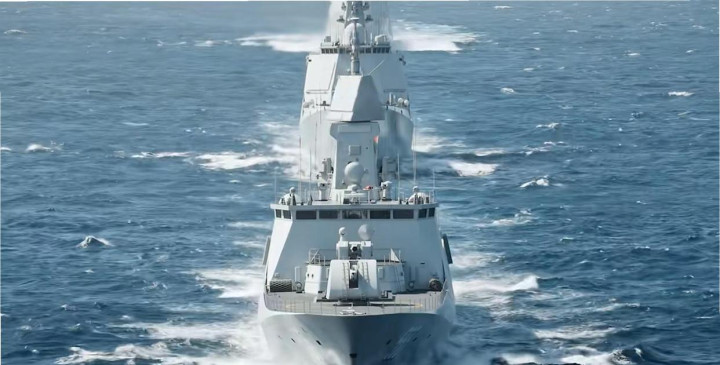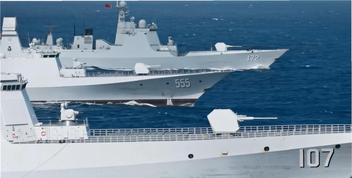 055型闭幕舰102“拉萨”舰领衔,052D型闭幕舰119“贵阳”舰协同,903A型详尽补给舰“可可西里湖”舰奉陪保险,三舰以规整队形向东北高速飘动,穿越对马海峡参预日本海。