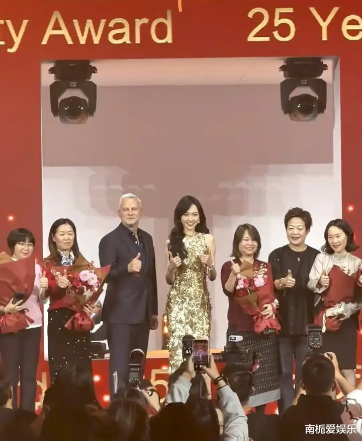 无需精修的镜头下,唐嫣皮肤紧致透亮,冷白皮与金色礼服相得益彰,身材纤细却不显单薄,被赞“冻龄天花板”。即便与高清镜头直面交锋,她依然美得不可方物,打破了“精修依赖”的明星通病。许多观众感叹:“这才是真正的女神状态,美得自然,美得高级。”