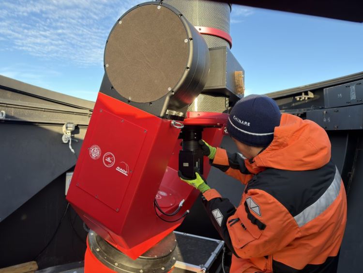 2026年1月,中国第42次南极覆按队队员周星宇在南极中山站惊奇天文千里镜。(受访者供图)