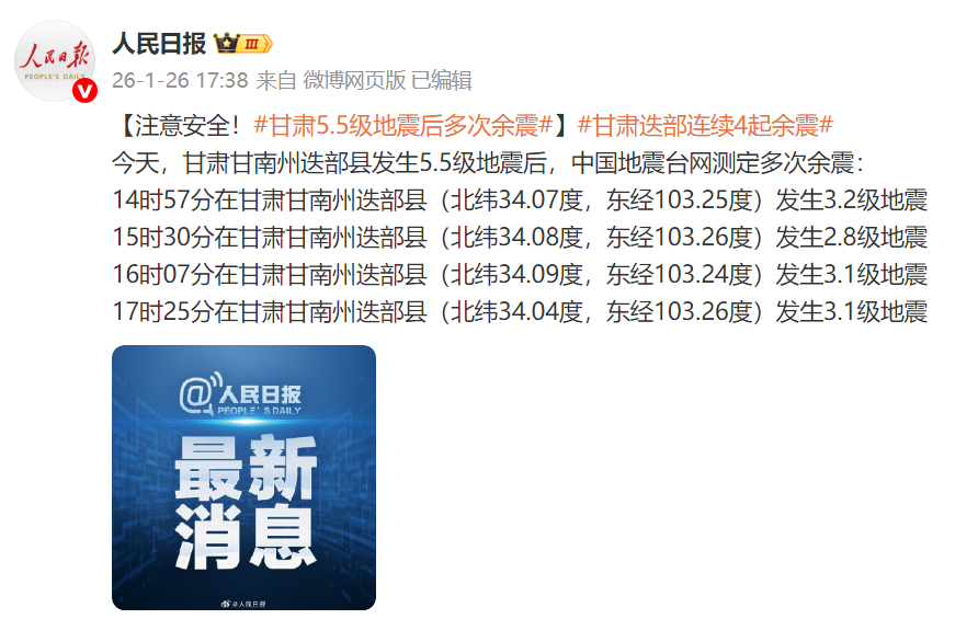 【细腻安全!甘肃5.5级地震后屡次余震】