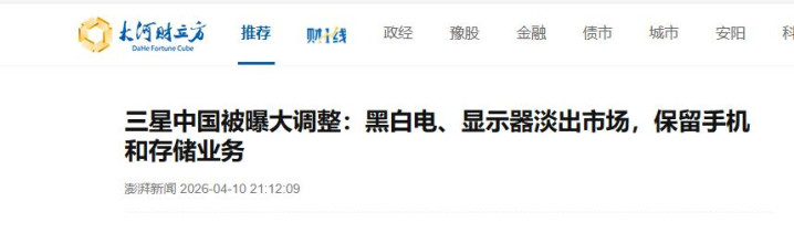 4月10日多方说明三星中国区开动大撤回,民众电和泄露器业务将全面淡出,仅保留手机和存储