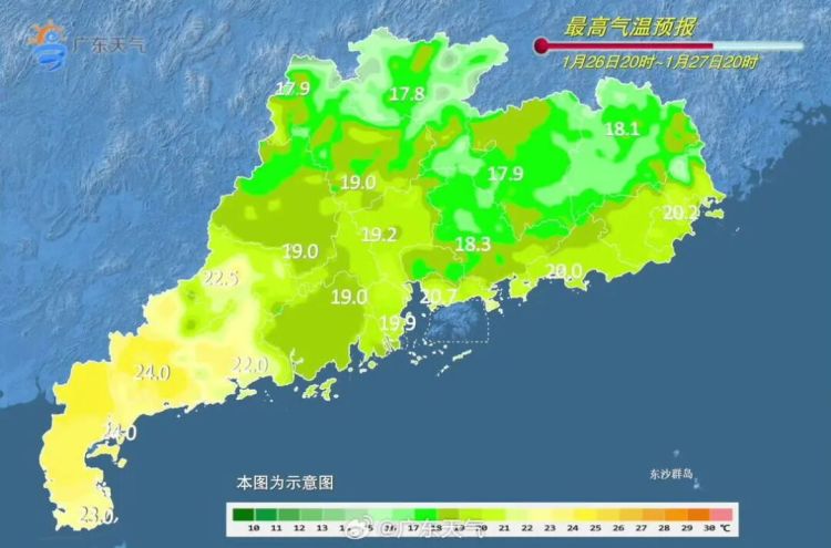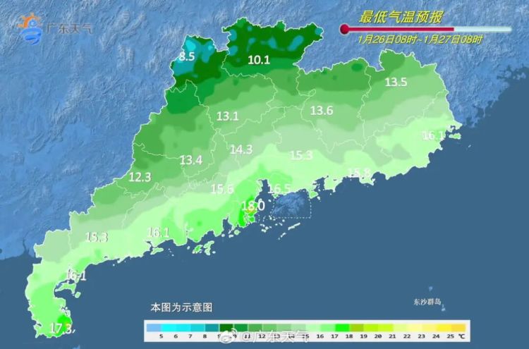 粤东市县稀薄小雨转多云,其余市县多云间好天。最低气温:粤北市县7~10℃,雷州半岛15~18℃,其余市县11~15℃。