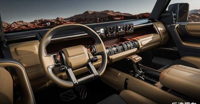 在车内,Boulder领有因循昔日目的的客舱,它莫得传统的姿色露出,而是在挡风玻璃底部露出首要车辆信息,近似全宽昂首露出。圆形姿色盘选定四个带有实体杀青按钮的小方形露出屏,而非强盛屏幕。