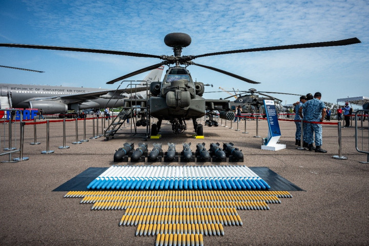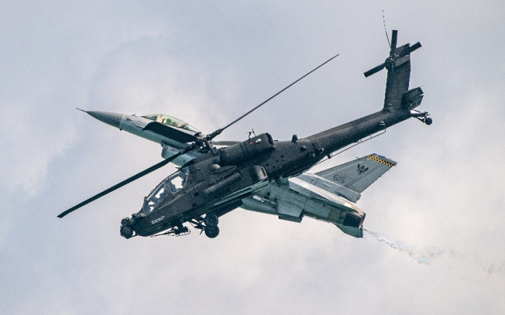 航行扮演中,新加坡的F16与阿帕奇直升机交错而过