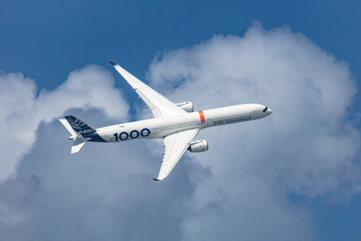 在新加坡航展进行航行扮演的商飞C919大飞机