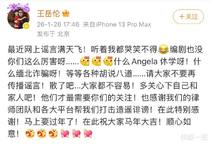 男儿王诗龄被传休学,前妻李湘被传涉缅北糊弄,王岳伦站出来统统否定,还趁机告诫网友不要以谣传讹——序文。