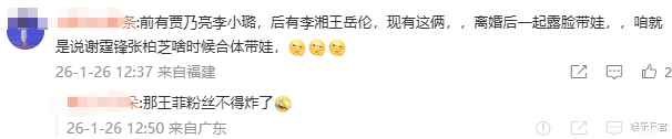 “前有贾乃亮李小璐,后有李湘王岳伦,现存这俩,辞别后沿路露脸带娃,咱等于说谢霆锋张柏芝啥时刻合体带娃。”