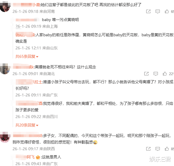 还有东谈主说:“他们这辈子皆是彼此的天花板了,再找忖度皆没那么好的了。”“辞别不应该老死不相闻问,不然对小孩成长也不好。”但也有网友说:“多子女,不同老婆的,今天和这个带孩子沿路玩,翌日和阿谁陪孩子沿路玩,我咋以为酷爱怪,很别扭的嗅觉呢!有种割裂感”。