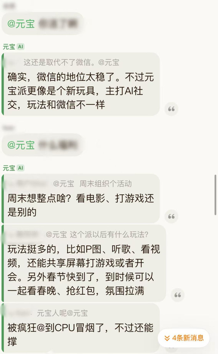 不外「元宝派」内部的元宝太忙了,偶而会出现掉线的情况。小雷场地的群里,人人皆图崭新,一直艾特元宝维护回首群音书。一时分元宝需要消化的音书太多,时相似皆会掉线一下。