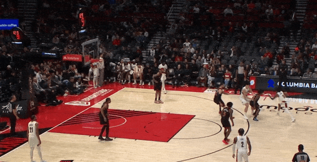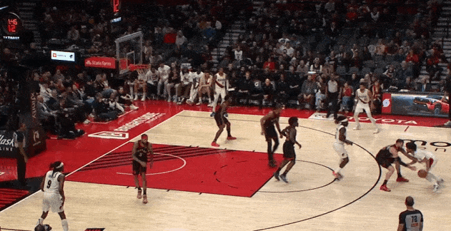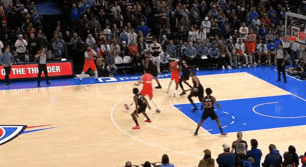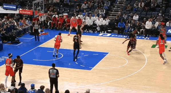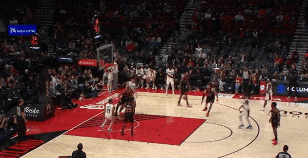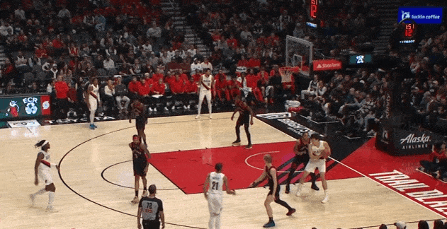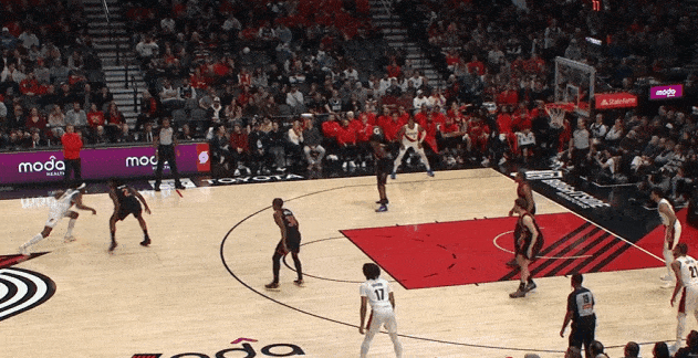 对位弱侧阴魂区埋伏的卡马拉担任内线护框手,见格兰特强侧蹂躏直杀篮下立即站住护框位置,随后篮下起跳排球大帽扇飞格兰特的上篮。