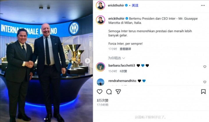 直播吧2月16日讯不久前,前国米主席托希尔更新酬酢媒体,晒出了我方探询国米总部与马洛塔的合照。