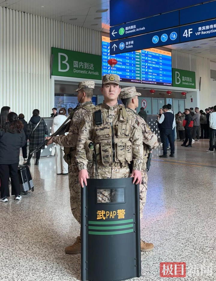 春运开启,武汉河汉机场T3航站楼内呈现一片坚苦景观。担负武汉河汉机场持勤任务的武警湖北总队武汉支队某部官兵,信守在哨位,督察着游客出行祯祥。每一次耐性的教导,每一次珍爱的帮扶,齐会让归乡的路径多一份宽解与保险。