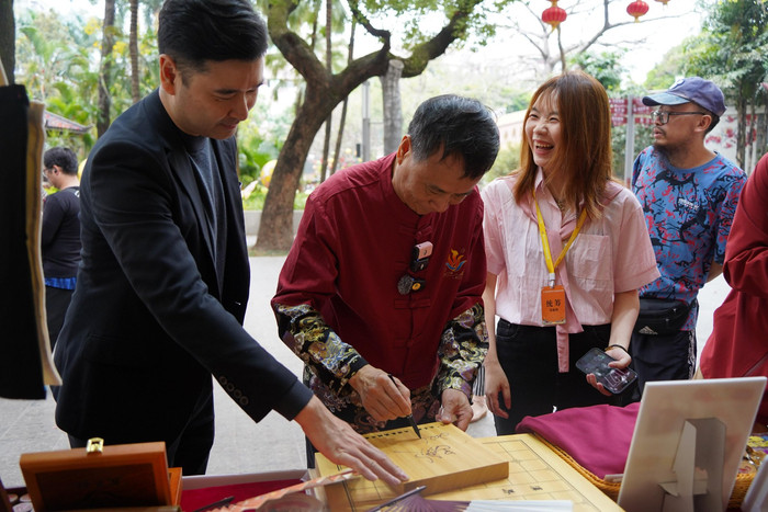在五羊杯嘉年华,吕钦与广东东湖棋院院长容一念念一同千里浸式感受这场棋坛文旅盛宴,品味广府好意思食,体验非遗手作,不雅看非遗糖画、彩绘等年俗身手,与棋迷亲切互动,并奉上亲笔签名。在喝下一口生机勃勃的羊肉煲汤后,吕钦点赞说念:“靓汤,够味!”