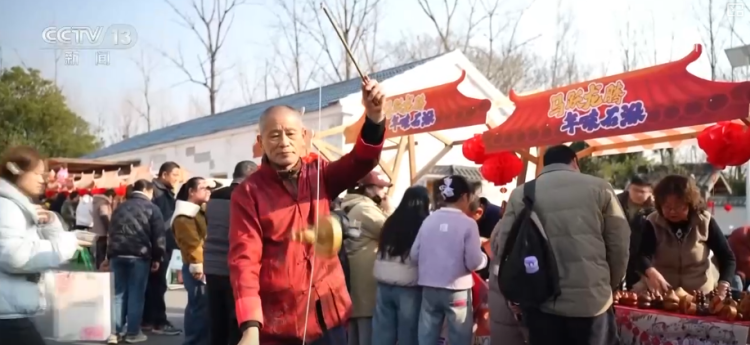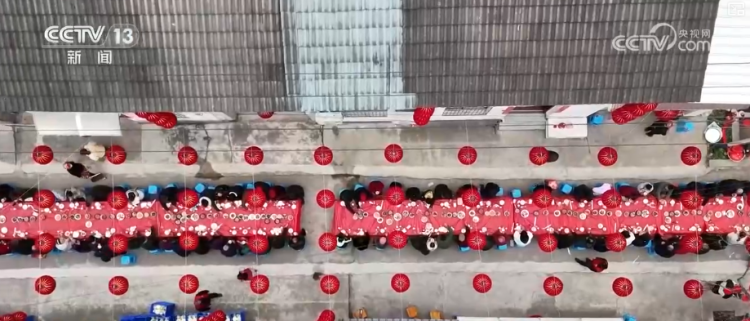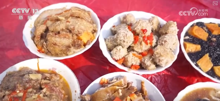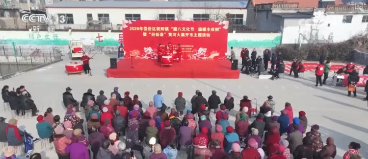 在湖北仙桃古村庄,乡亲们围坐分享传统腊八席。在随县厉山镇,搅扰的庙会、年货阛阓也红火开市。