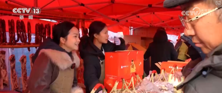 此外,在年货大集上,牛羊猪鸡、簇新蔬菜等商品,都是农民自产自销的,眩惑着市民来这里置办年货,体验“年味”。