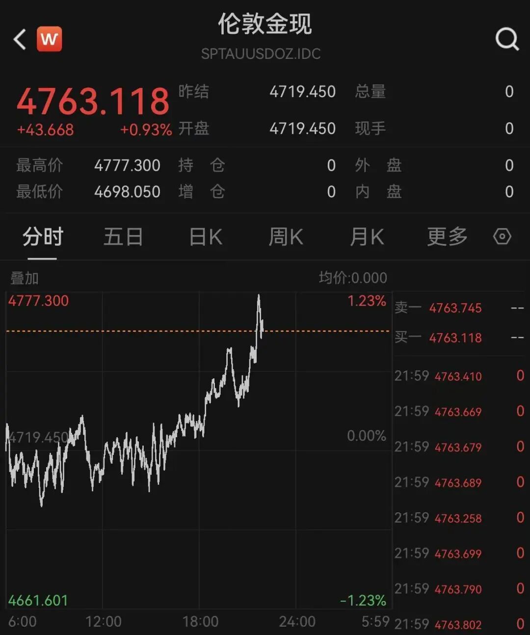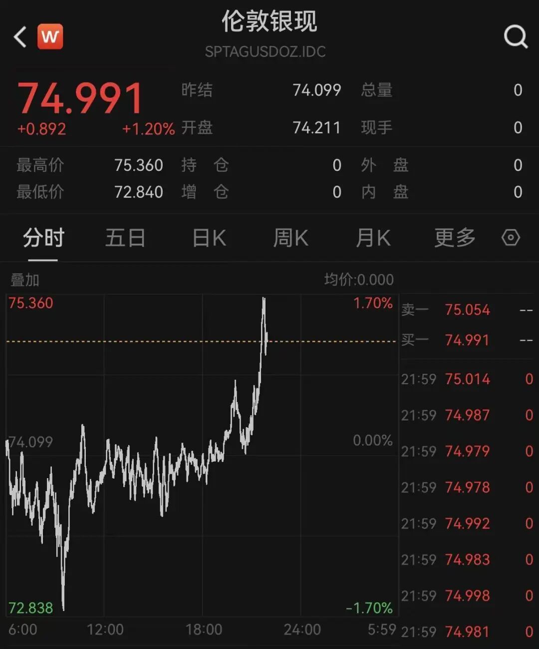 贵金属拉升。按捺发稿,海外现货黄金报4763.118好意思元/盎司,涨幅为0.93%;现货白银报74.991好意思元/盎司,涨幅为1.2%。