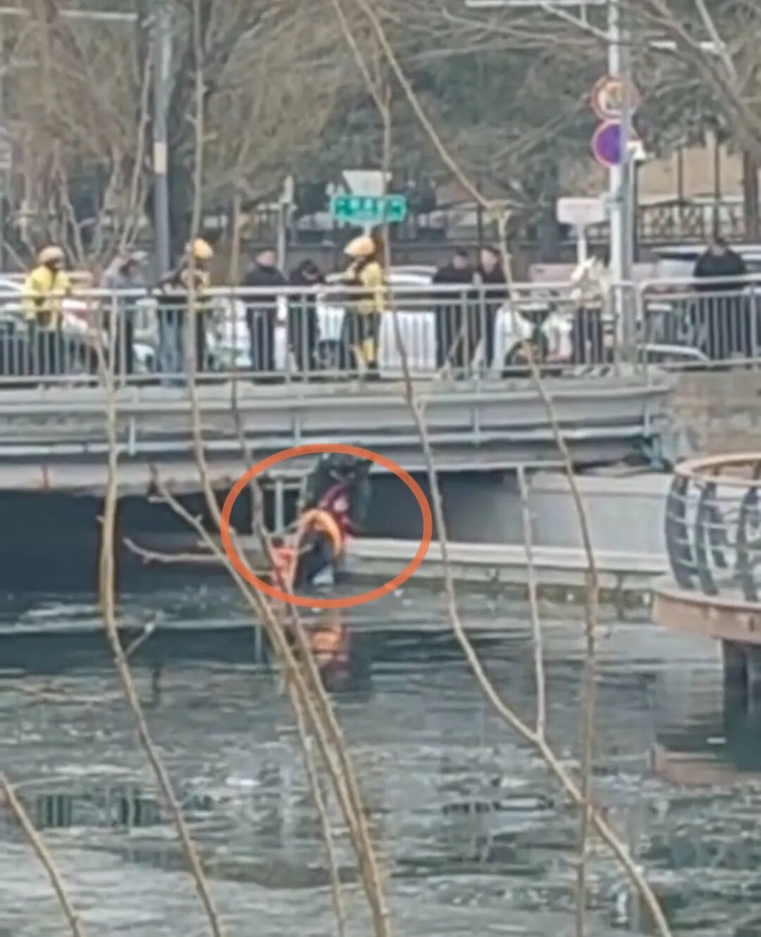 本日北京气温-10℃,亮马河水面飘浮着冰块,阴凉刺骨。亮马河就在大使馆左前线,河中央水深约5米,河岸边也有两米多深,那时女子头部常常没入水中。