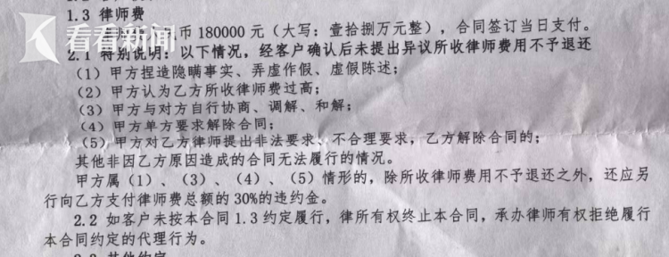 更离谱的是,公约里还藏着“霸王条件”:如果客户片面根除公约,不仅不退讼师费,还要独特支付30%的失约金。