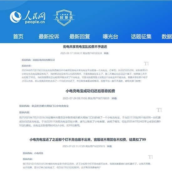 “归还难”问题也数见不鲜。在东说念主民网“东说念主民投诉”平台,记者看到,2025年7月21日,有奢靡者反馈,在江西赣州归还“小电”充电宝后,系统仍在计费,并最终扣费99元;2025年8月17日,有奢靡者反馈,在陕西汉中租赁“街电”充电宝,因无就近网点无法实时归还,后续被扣99元,且平台拒不退款。记者曾经在市集闭店后遭受归还穷困,机柜满柜无法归还。奢靡者陆先生暗意,他如今只在24小时便利店租赁,幸免因归还未便产生出奇用度。