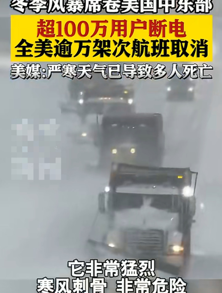 凛冬大难突袭好意思国,一场自23日起席卷全境的大界限冬季风暴,正将这片地盘拖入严寒危急。欺压25日下昼,这场极点天气已形成多东说念主耗损的悲催,更激发电力、交通的全面瘫痪,超2亿东说念主口被喧阗预警隐敝,23个州迫切拉响警报,好意思国正阅历一场前所未有的冬季不散逸。