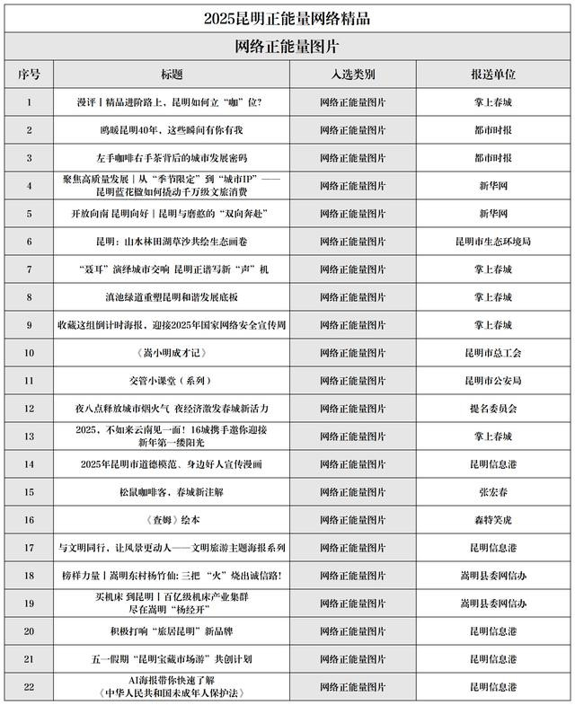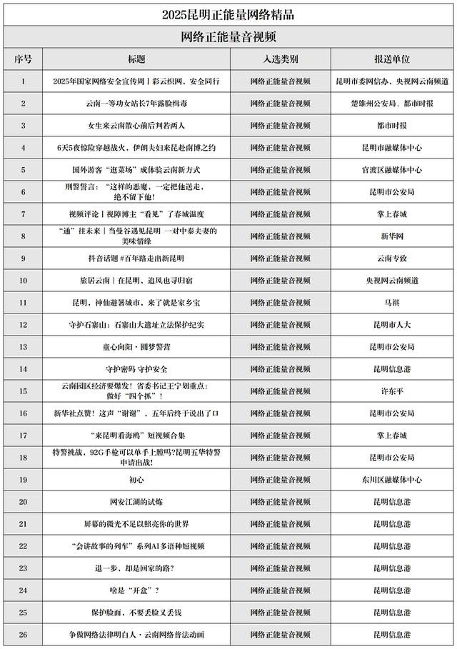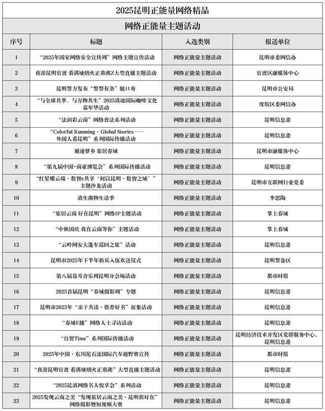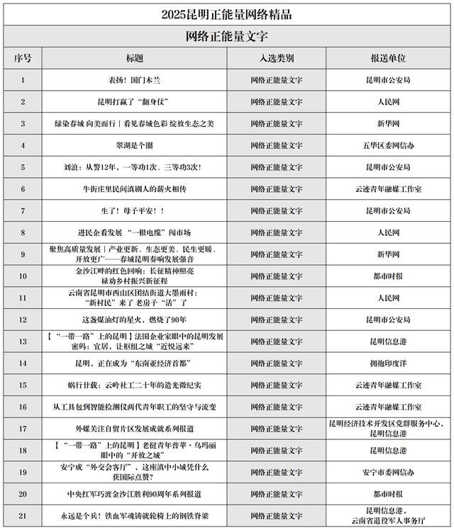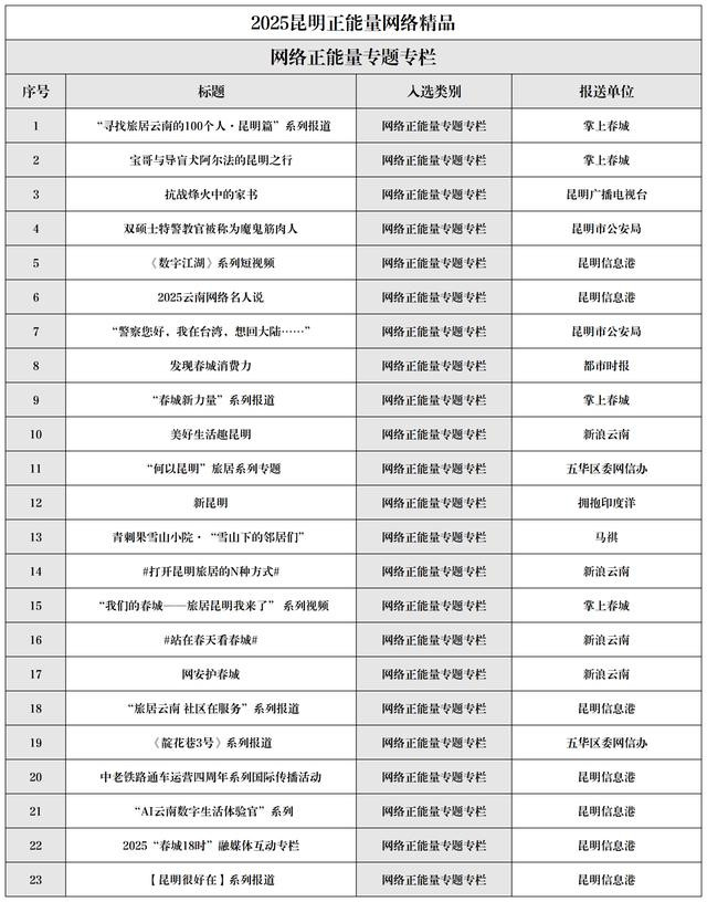 2025昆明正能量聚集佳构名单