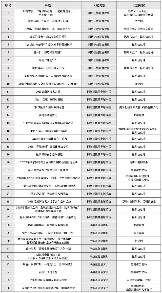昆明入选2025云南正能量聚集佳构作品